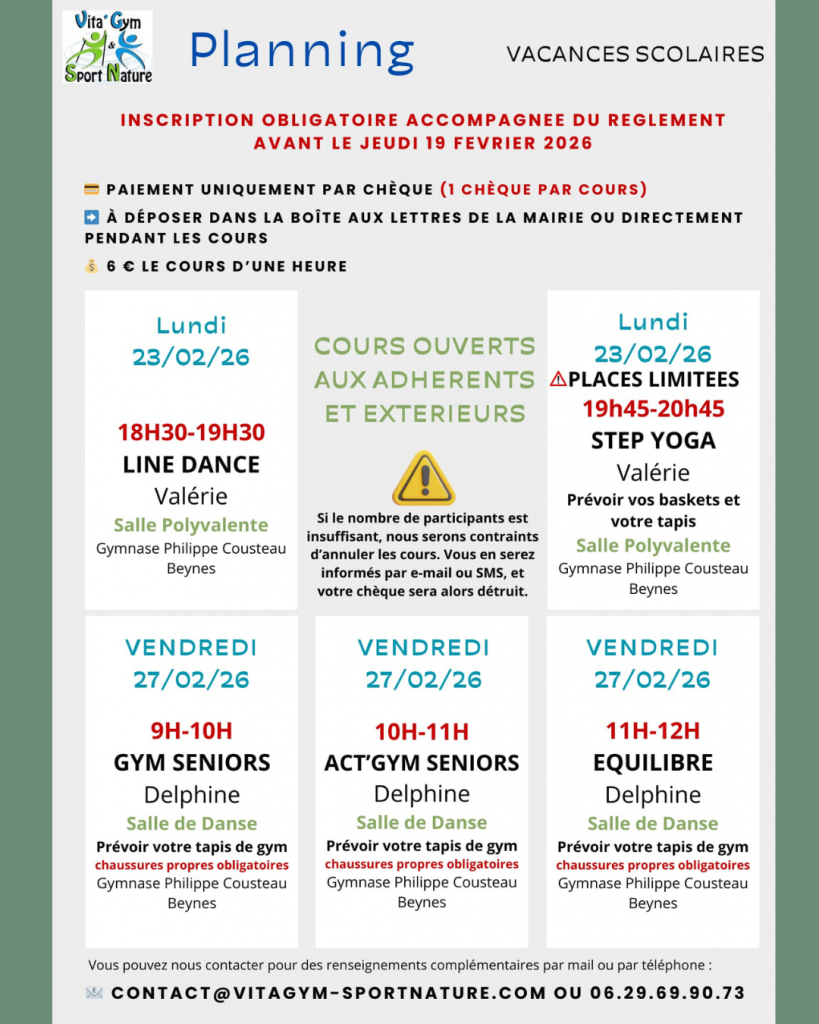Gym douce – Danse – 🤸 Fitness – 🚶 Marche nordique – 🧠 Équilibre & mémoire – 🧒 Gym enfants – et bien d’autres…